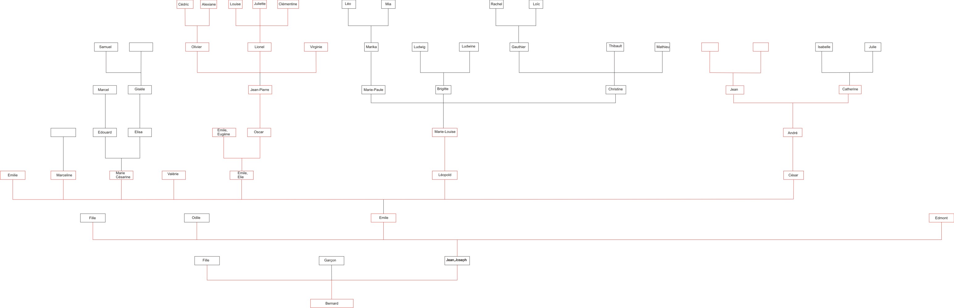 Bernard Jean, Joseph Garcon Fille Odile Emile Edmond Emilie Marceline Edouard Elisa Gisèle Marie, Césarine Cédric Alexiane Louise Juliette Clémentine Olivier Lionel Virginie Jean-Pierre Emile Oscar Emile, Elie Léo Mia Marika Marie-Paule Marie-Louise Léopold Ludwig Ludwine Brigitte Rachel Loïc Gauthier Thibaut Mathieu Christine Jean Catherine Isabelle Julie André César